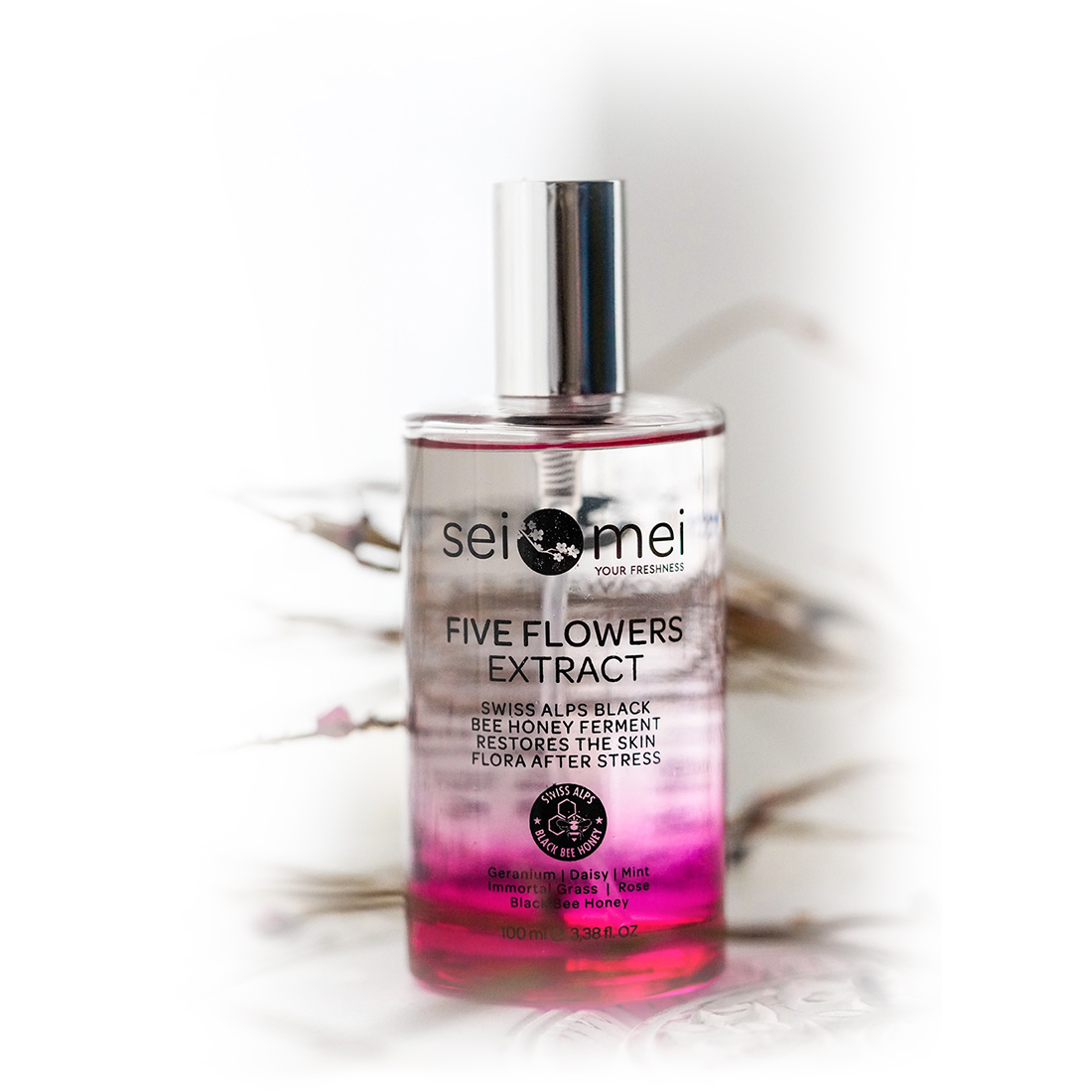 Sardunya-Ölmez Çiçeği-Papatya- Nane ve Gül Hidrosolleri çok özel formülasyon ile mucizevi bir toniğe dönüştü. İsviçre Alplerinden gelen cilt stresini ortadan kaldıran mucize siyah arı balı özü kullanılmıştır. Ciltteki kiri, mavi ışığın oluşturduğu yorgunluğu ve stresi, teknolojik kusurları anında yok eden doğal cilt bakım suyu.